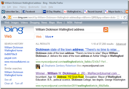 So for this discussion let’s say I know nothing more about the Mayor than his name and that he lives in Wallingford. (By the way – I am doing this right now at 8:30AM Sunday morning when the Wallingford Town Hall is closed).